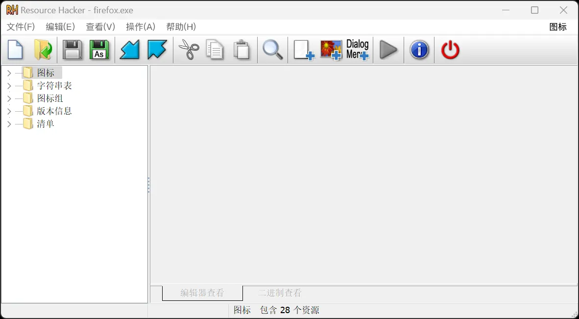 以 Tor Browser 为例,打开 Resource Hacker,将桌面上 Tor Browser 快捷方式指向的 .exe 拖到 Resource Hacker 里。