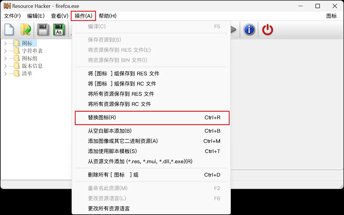 用 Resource Hacker 打开需要修改的 .exe 文件#