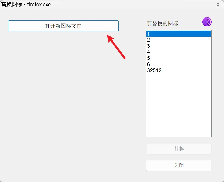 在右边选择想要替换的图标,然后点击打开图标文件。