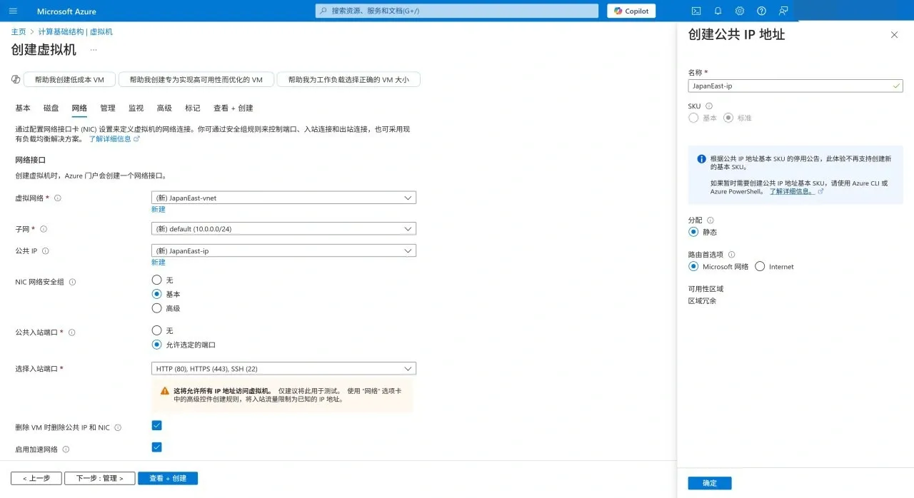 相较于新用户的 200 美金赠金,学生订阅的有效期为 12 个月且可以续期,不需要验证信用卡;但 az200 的赠金有效期只有 30 天,而且需要验证信用卡。在 2025 年 3 月 31 日之前,az200 还是可以在赠金过期前转成按量计费来免费使用 12 个月的服务器的。但是根据微软官方的通告 ↗,2025 年 3 月 31 日将停止基本 SKU 的创建,已经创建的将在 9 月 30 日废弃掉。这样就无法将服务器 ip 设为动态,而标准 SKU 的价格则高达 $0.005/小时 ↗,也就是一年 $43.8。